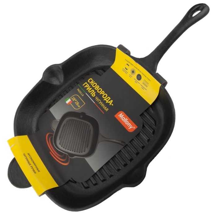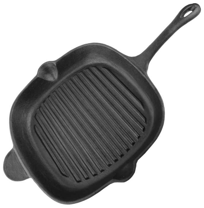 - + Сковорода из чугуна,тяжела и весьма качественная. Ранее купил пресс- гриль 23х23 см этой же фирмы. Эта сковорода будет радовать долгие годы при приготовлении мяса,рыбы...