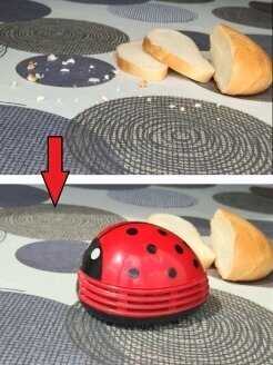 - + Очень симпатичная и нужная вещь для сбора крошек и мелких обрезков. Батарейки прилагаются.