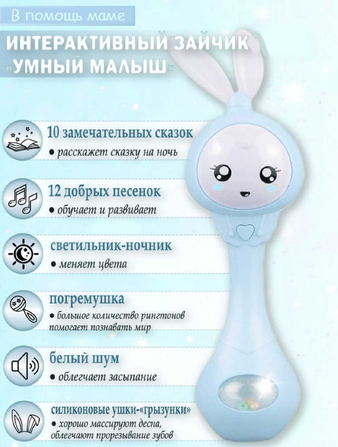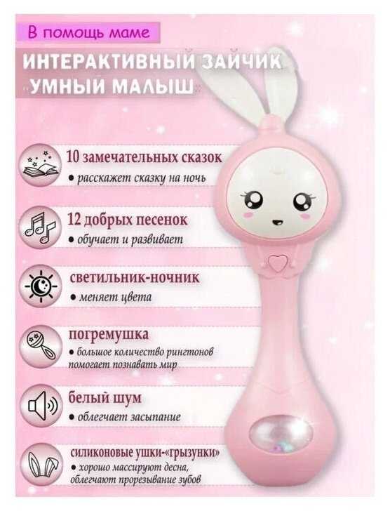 Отзывы о Музыкальная интерактивная развивающая игрушка-погремушка Умный малыш зайчик