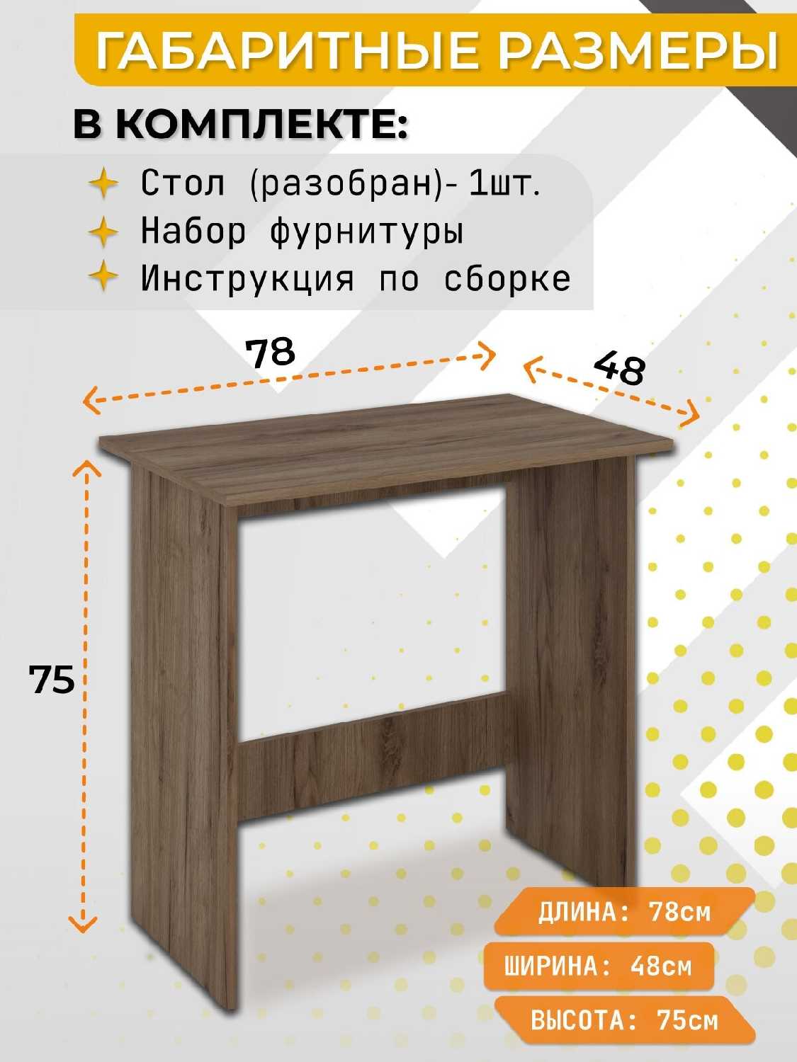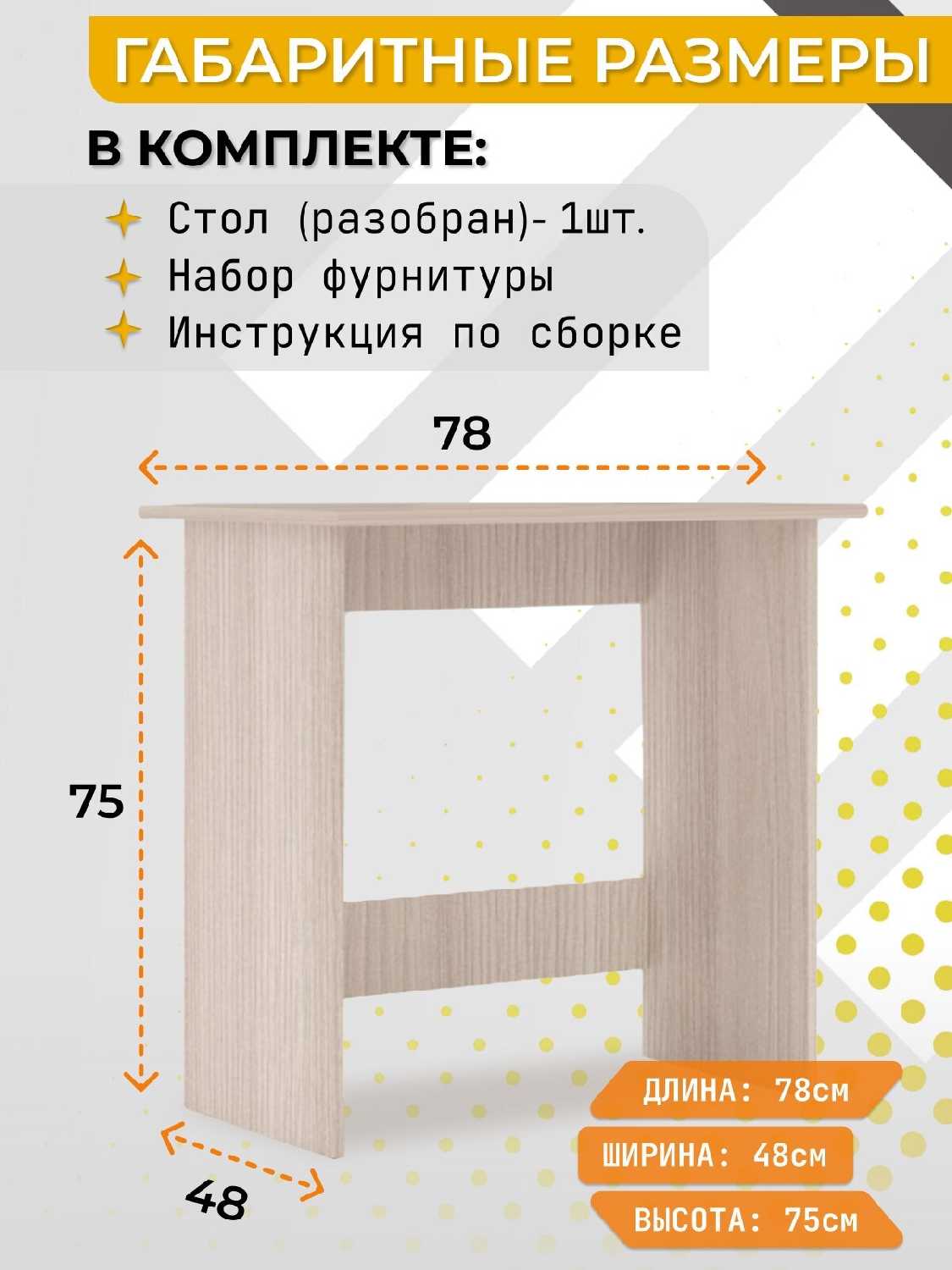 + Нейтральный по дизайну (кажется, впишется куда угодно) - - - Убогая инструкция! Там просто небольшая картинка шакального качества на клочке жёлтой бумаги, где нарисован стол и циферками показано, в каком месте какой крепёж (не то, как крепить, а просто какой именно вставлять болтик). Если бы это был мой первый стол или он был бы сложнее устроен, я была бы в ярости. Тем не менее, устроен он просто и проблемы с инструкцией не смертельны.