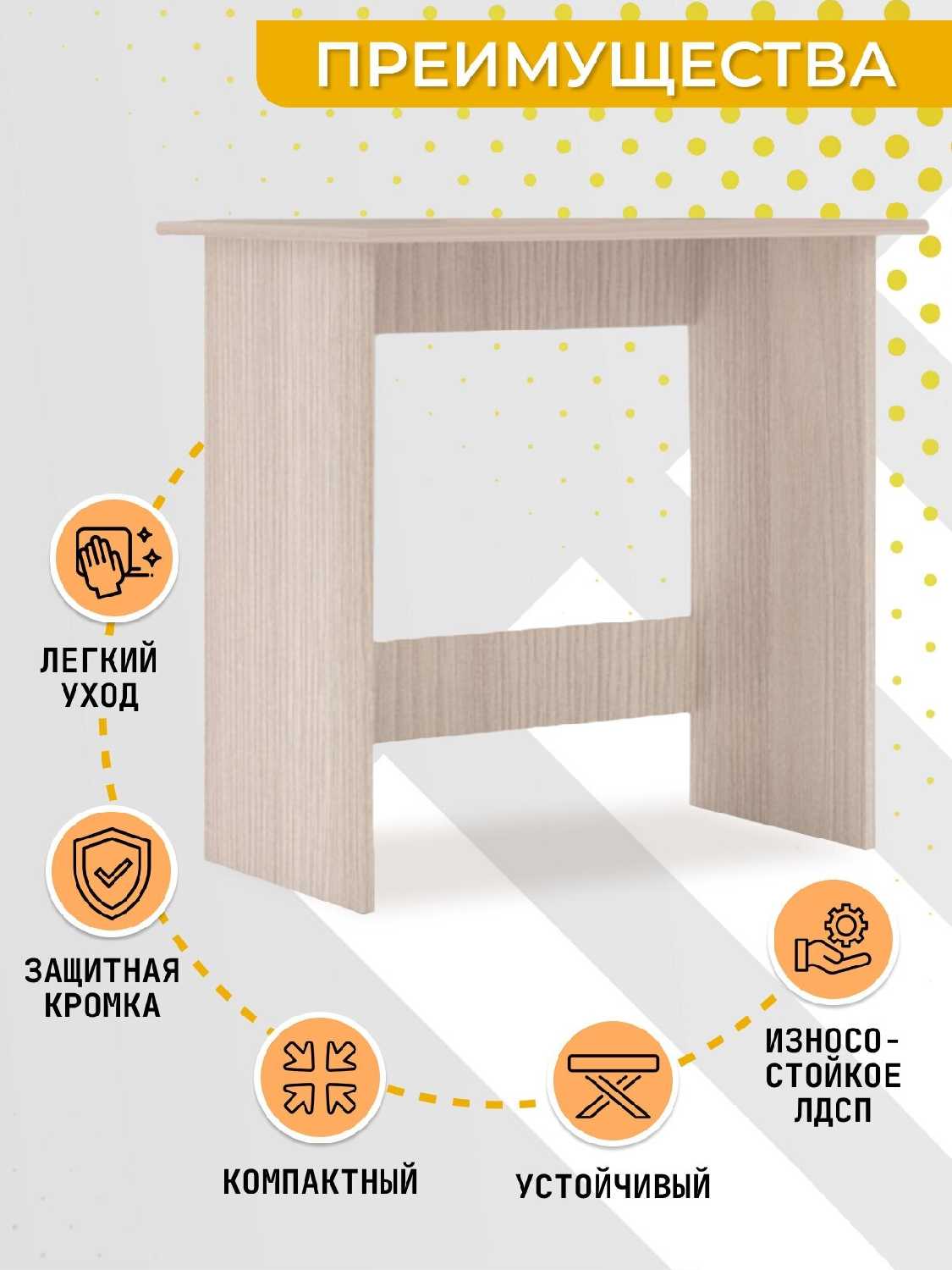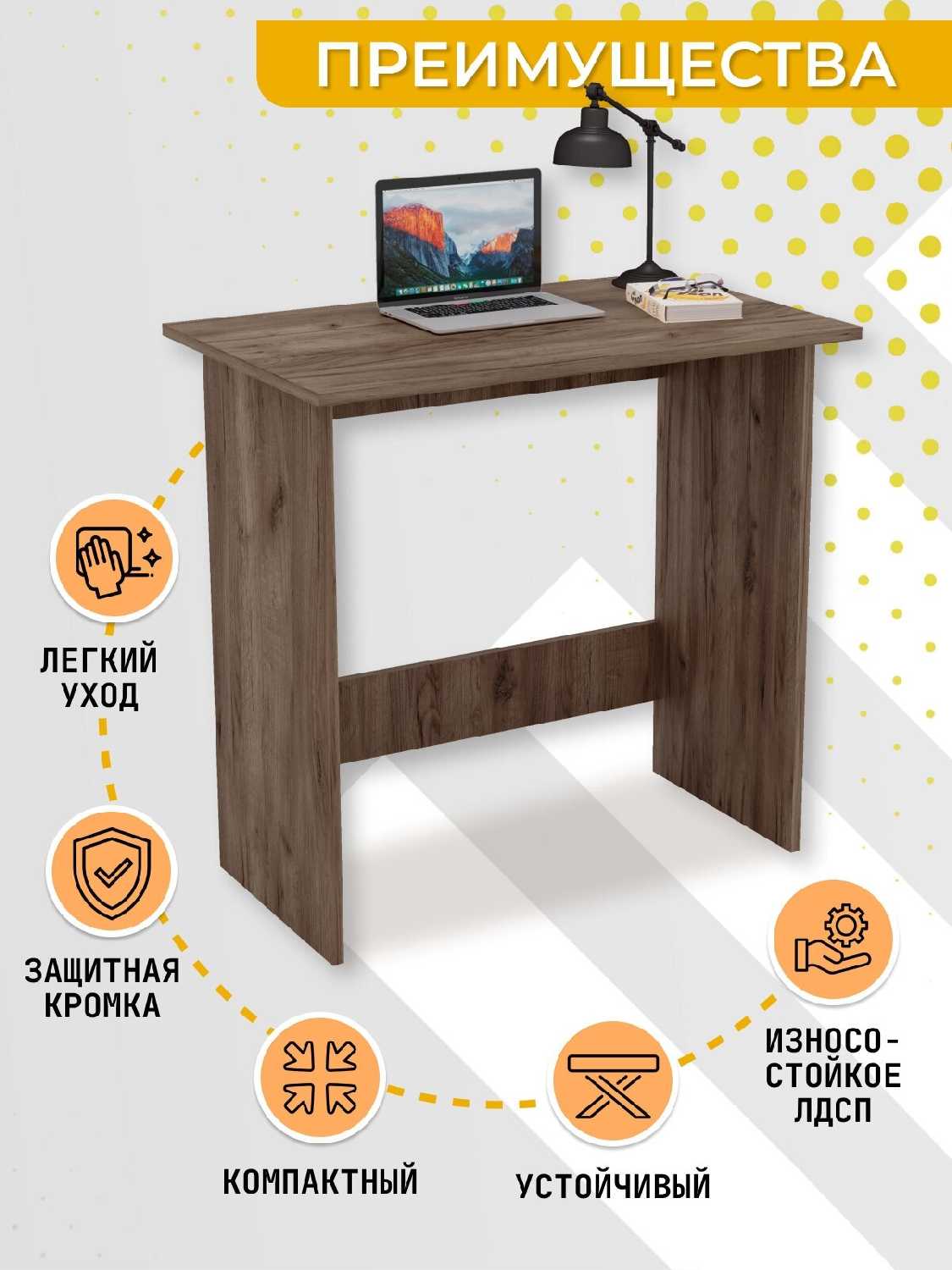 - + отличный стол. Компактный, но на нем умещается ноутбук и мышка.