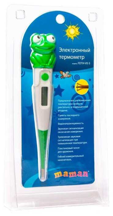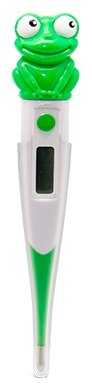 Отличный термометр,детям очень понравился лихаче с лягушонком,рассказали им сказку что это заколдованный принц и он призван лечить их!Измеряет температуру точно,сравнивали с ИК термометром.Термометр безопасный,кончик мягкий,батарейки хватит надолго.Рекомендую!