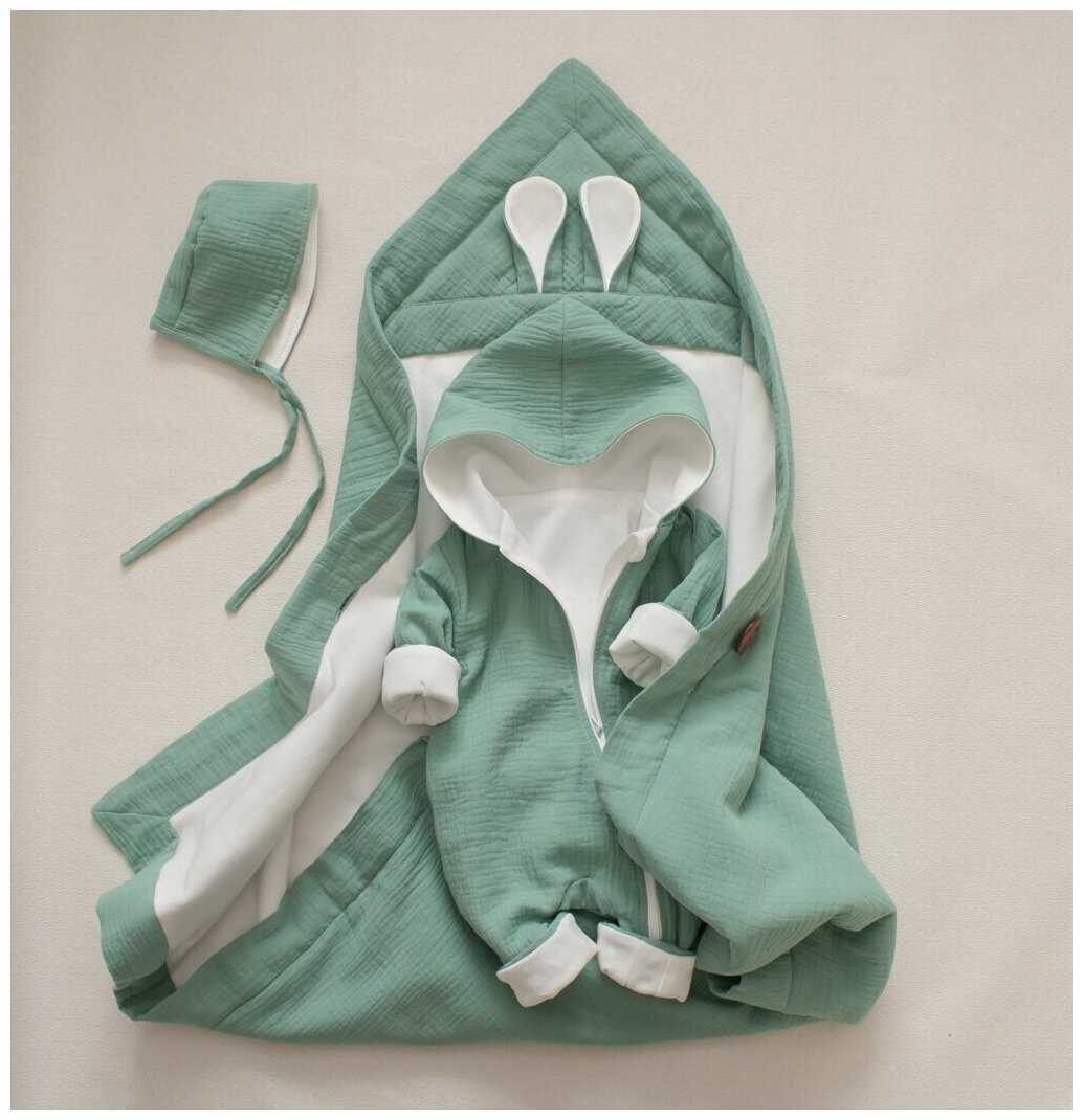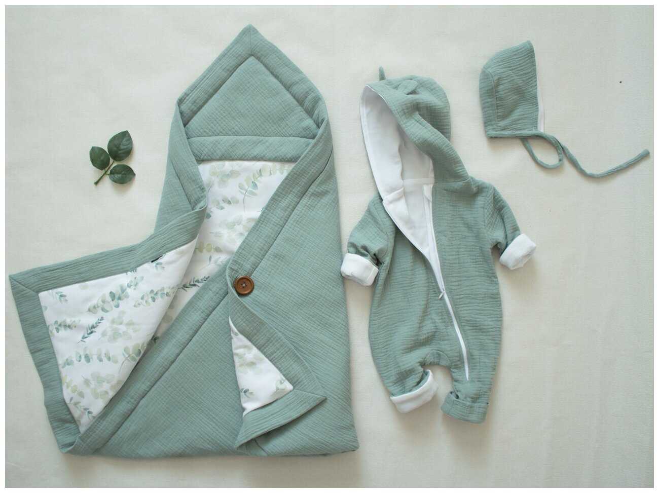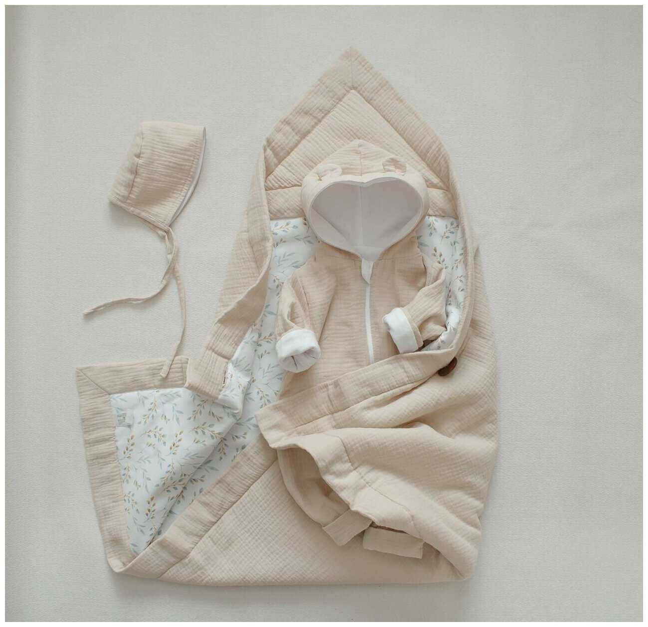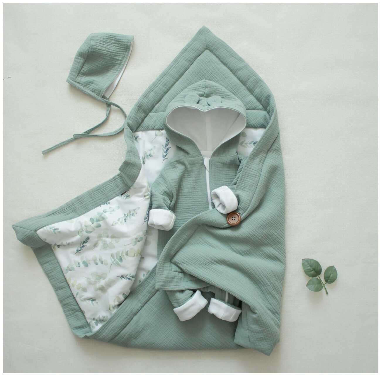 - Легкий конверт из муслина выполняет функцию укрытия, не утяжеляя ребенка и не создавая эффекта "парника".