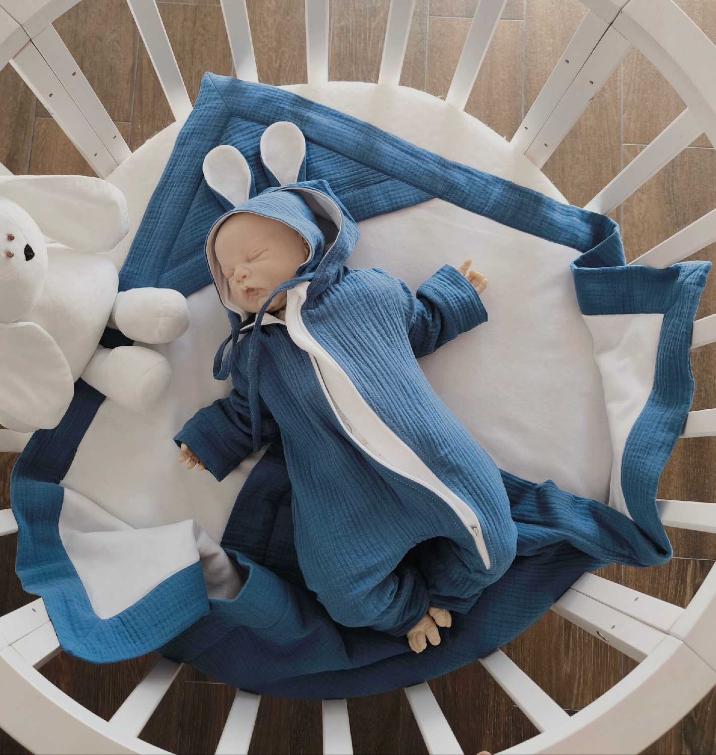 - Плотность и размер конверта позволяют использовать его в качестве пледа для фотосессий или прогулок.