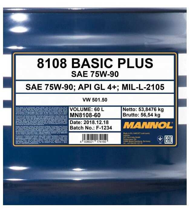 Характеристи Mannol Basic Plus 75W-90 75W-90