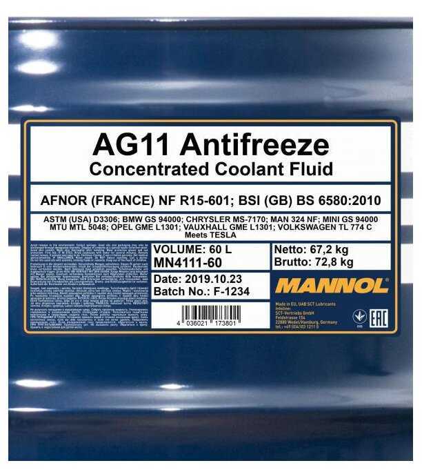 Характеристи Mannol Longterm Antifreeze AG11
