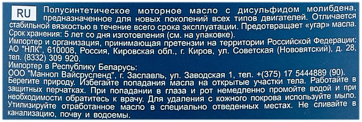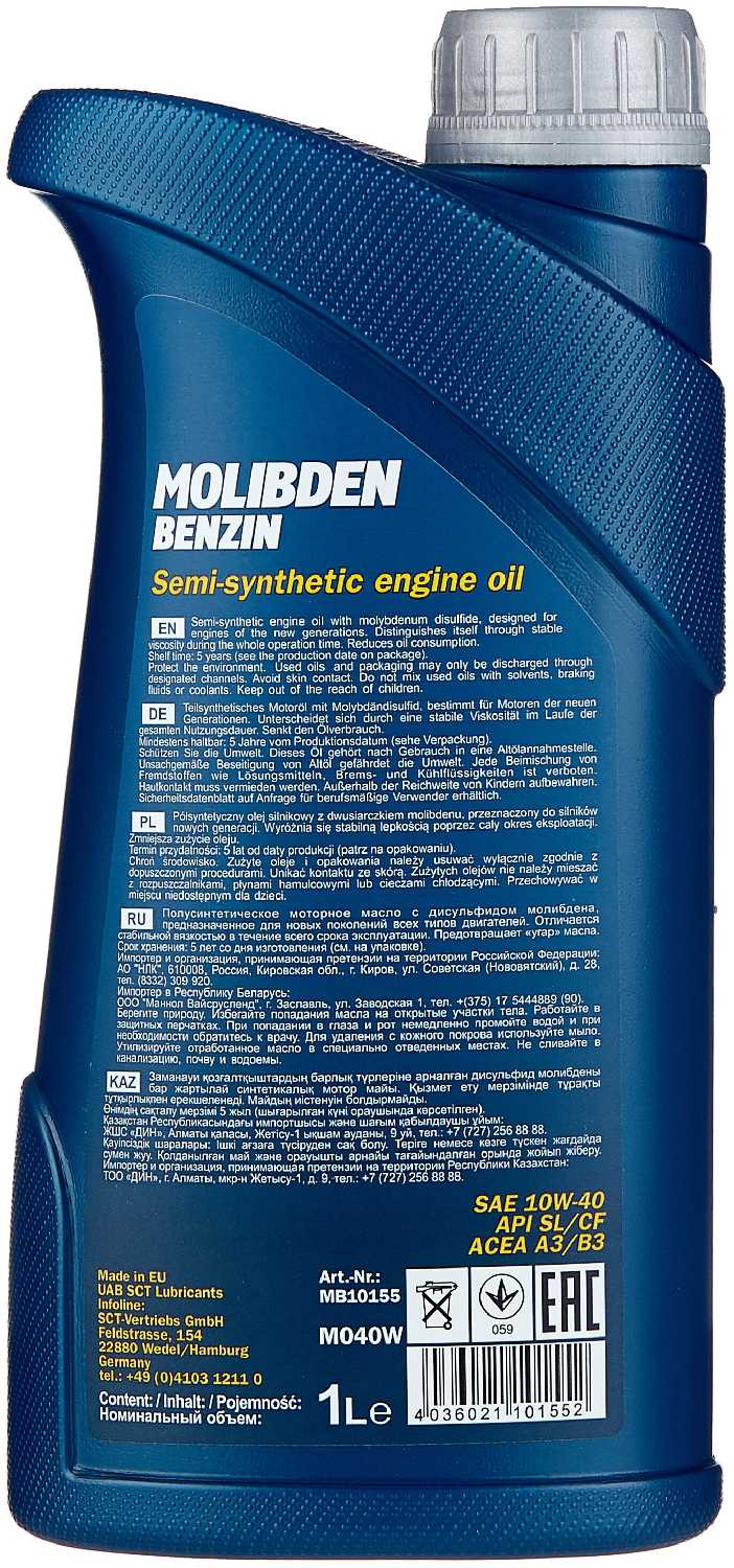 152 отзывов пользователей o Mannol Molibden Benzin 10W-40
