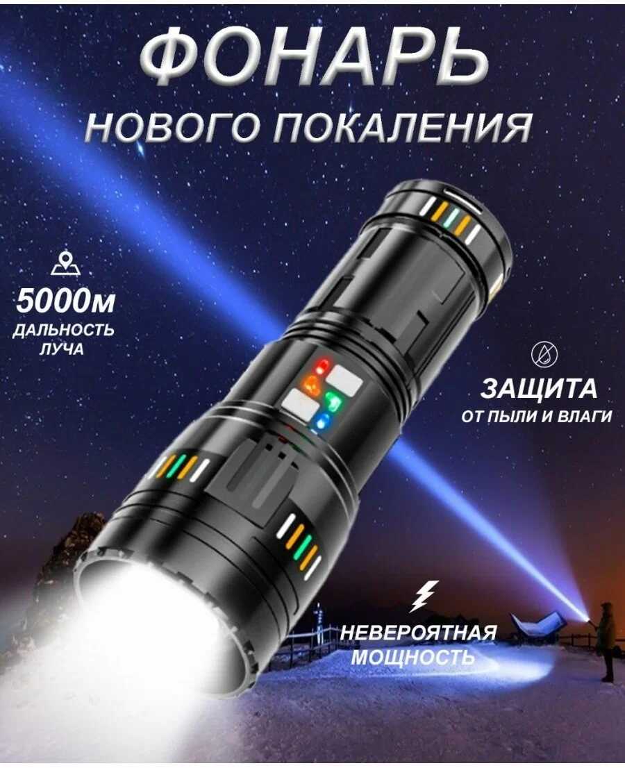 | Дополнительная информация : | Фонарь светодиодный мощный, ручной, аккумуляторный, сверхъяркий, с боковой подсветкой, кемпинговый |