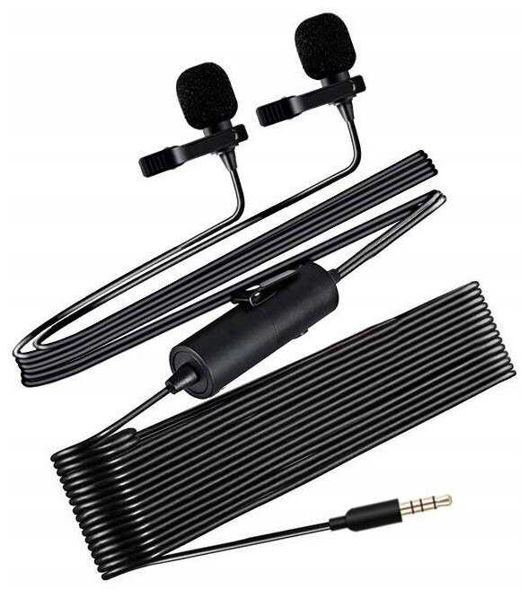 Целых 6 метров кабеля, что даже очень и очень удобно. Хорошее исполнение как внешне так и технически, за минимальную цену (1399 рублей), вы получаете сразу два микрофона, но не забывайте, он записывает в моно, если два, не значит что стерео.