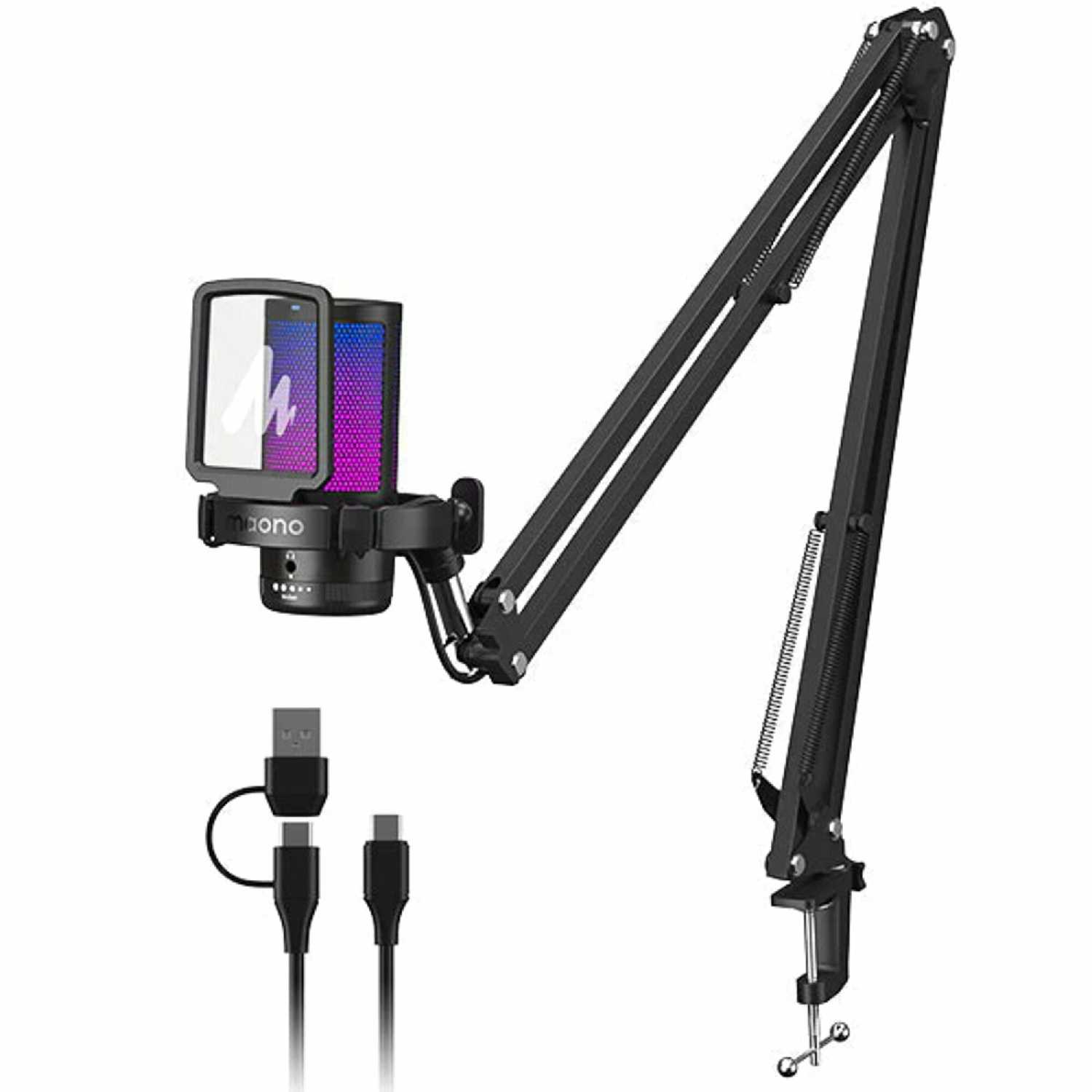 Отличный микрофон за свои деньги. Есть пантограф, сьемный поп фильтр и подсветка. Но Маона мне нравится что у них очень качественный звук. Пришло все быстро. Очень хороший микро. Уже неделю пользуюсь вопросов нету .