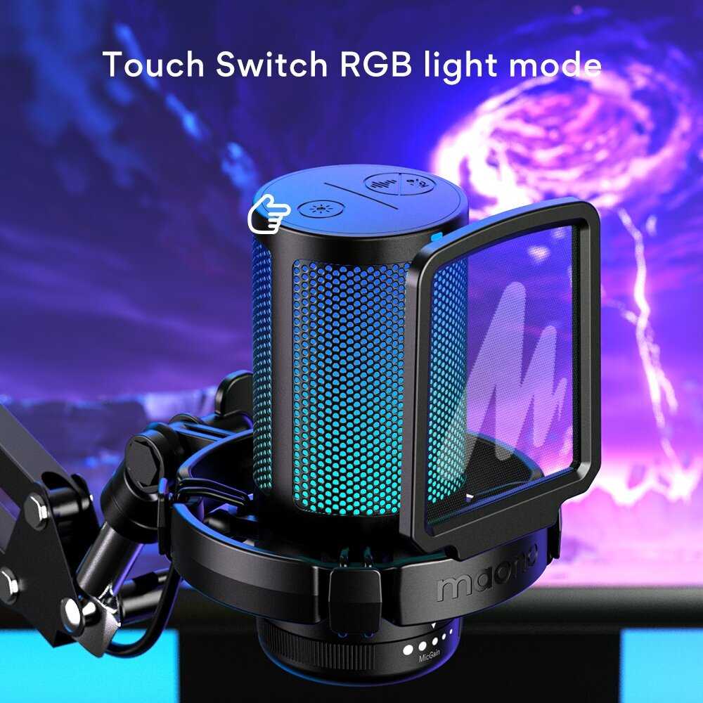 Общая характеристика и рекомендации: Maono DGM20 представляет собой компактный USB-микрофон с конденсаторной капсюлем, ориентированный на бюджетный сегмент для повседневного использования. Большинство пользователей (около 80% отзывов) отмечает чистый звук без значительных шумов сразу после подключения, что делает его подходящим для общения в Discord и TeamSpeak. В комплекте идут пантограф, поп-фильтр, подставка, USB-C кабель длиной 1,8 м и переходник USB-A. Сенсорные кнопки позволяют управлять mute, шумоподавлением и подсветкой без софта. Регулировка чувствительности осуществляется колесом на корпусе, а вход 3,5 мм обеспечивает мониторинг через наушники. Подсветка имеет 7 статичных цветов и 2 режима перелива, её можно выключить. Микрофон plug-and-play, работает из коробки на ПК без драйверов. Для стримеров-новичков и геймеров это оптимальный выбор за цену около 2500 рублей. Рекомендуется тем, кто ищет простой инструмент для голосового чата или базового стриминга без сложной настройки. Избегайте покупки, если нужны профессиональная запись или долговечные крепления без доработок.