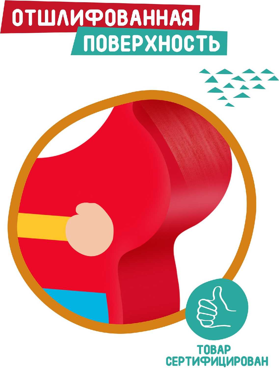 - + Качественный материал, краска не облазит, хотя ребёнок уже успел погрызть,