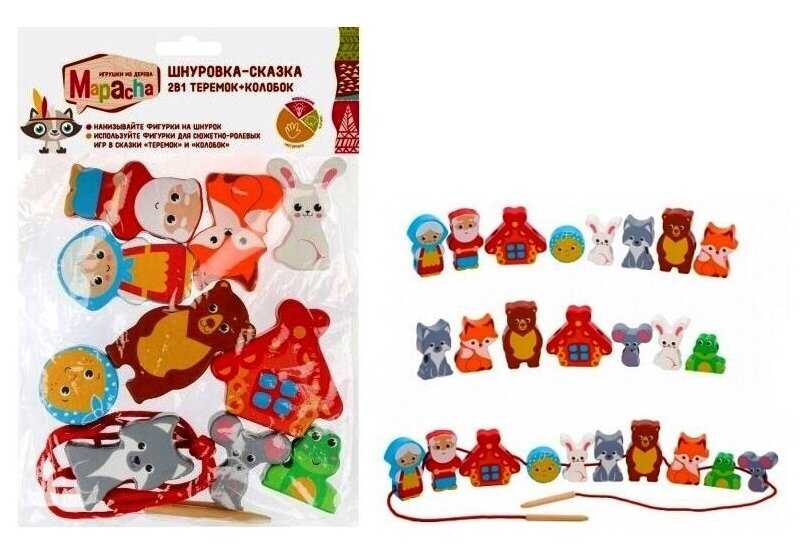 - + Две сказки на одном шнурке)красивые деревянные фигурки, приятные тактильно, тяжеленькие)
