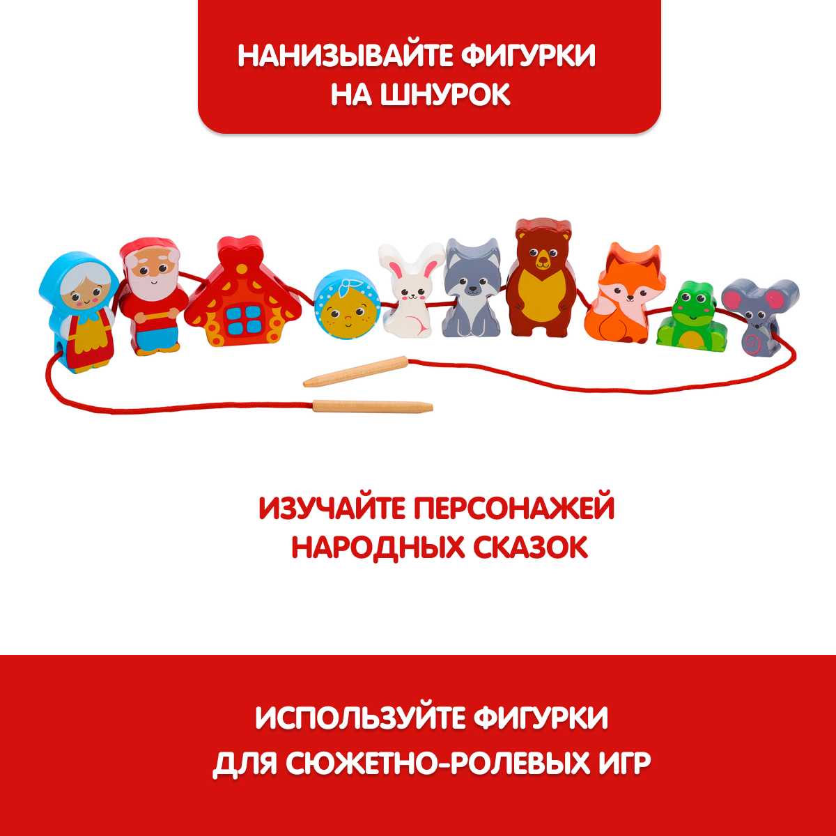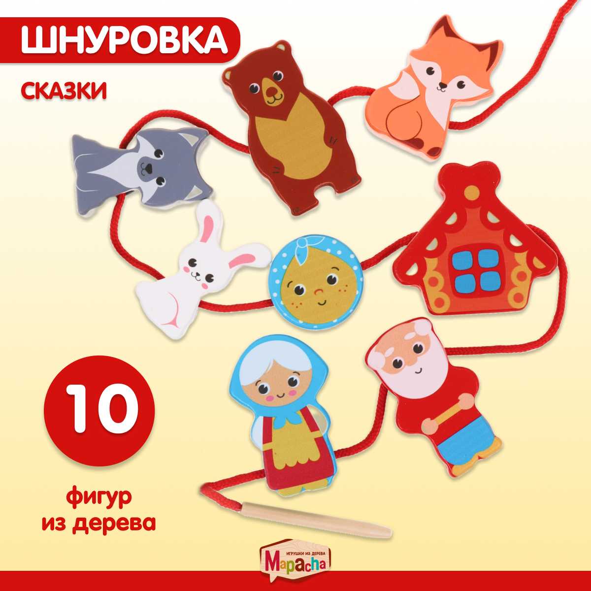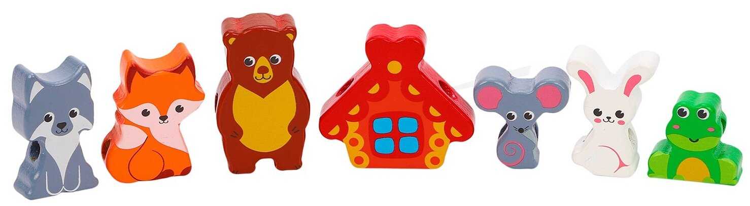 - + Замечательная игрушка. Деревянная, тщательно обработанная шнуровка. Персонажи сразу двух сказок красочные и очень милые.