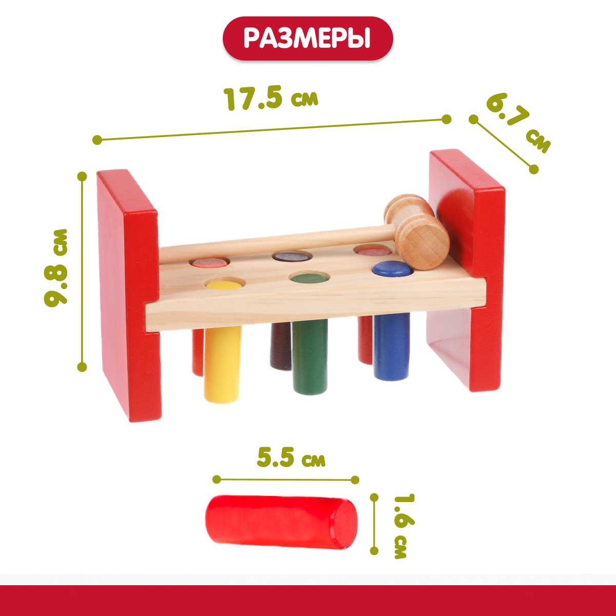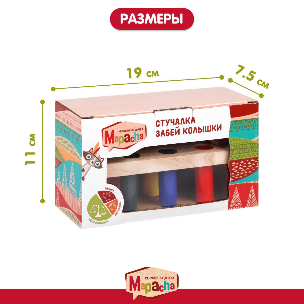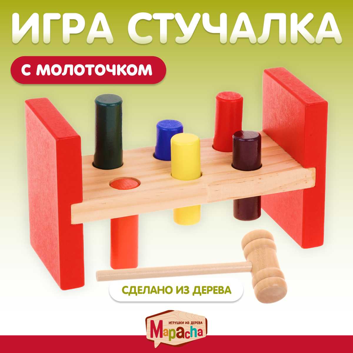 - + Яркая, надежная, деревянная, развивающая игрушка.