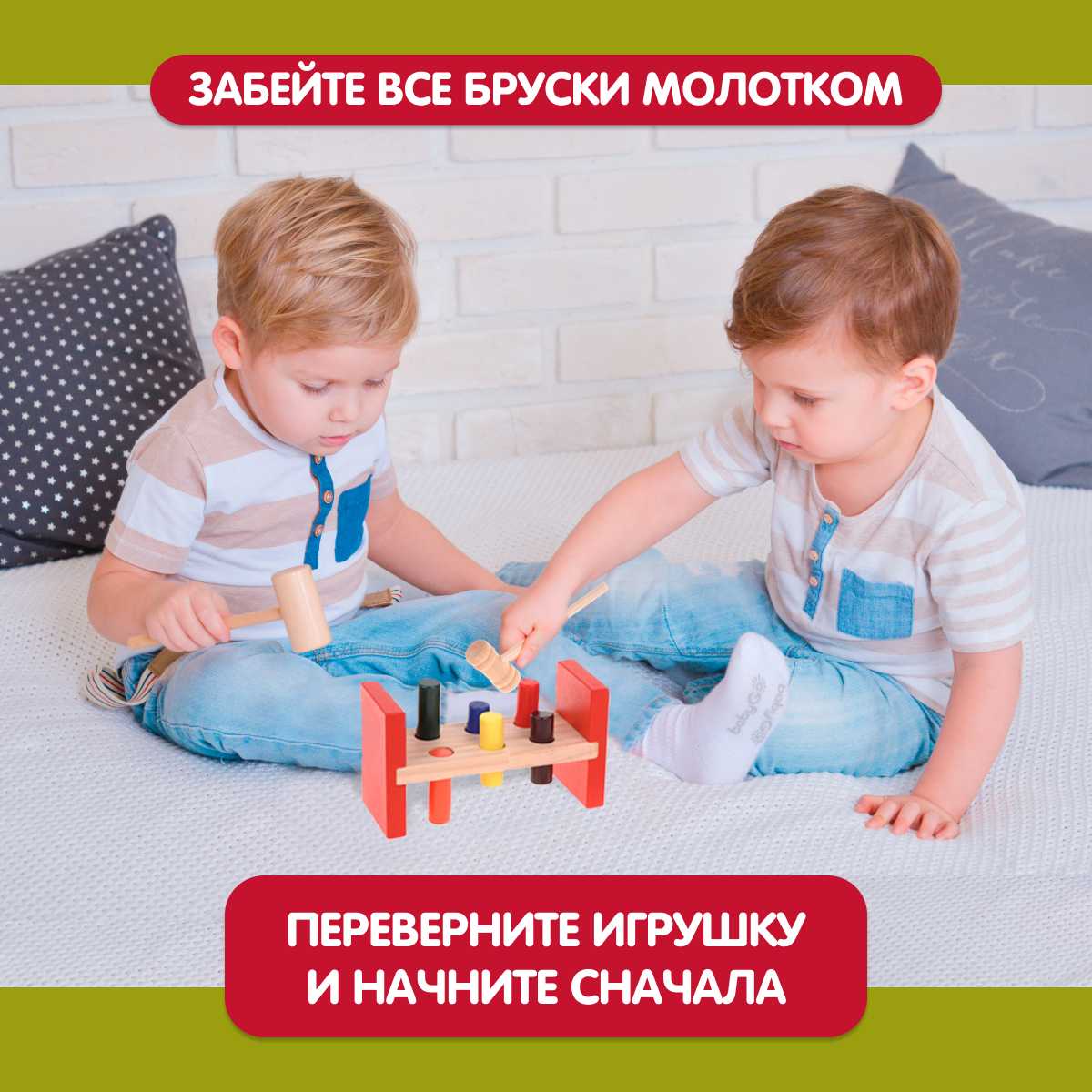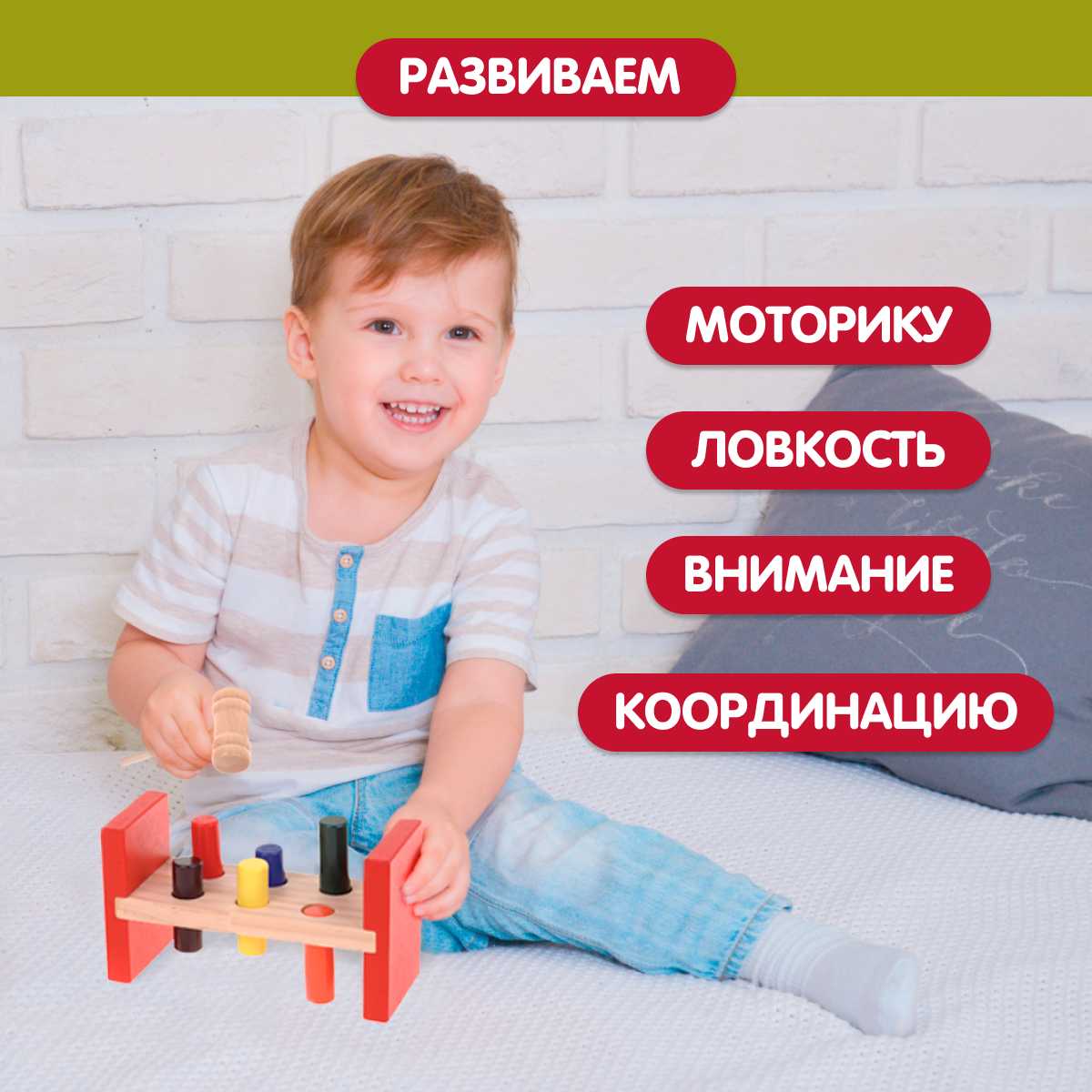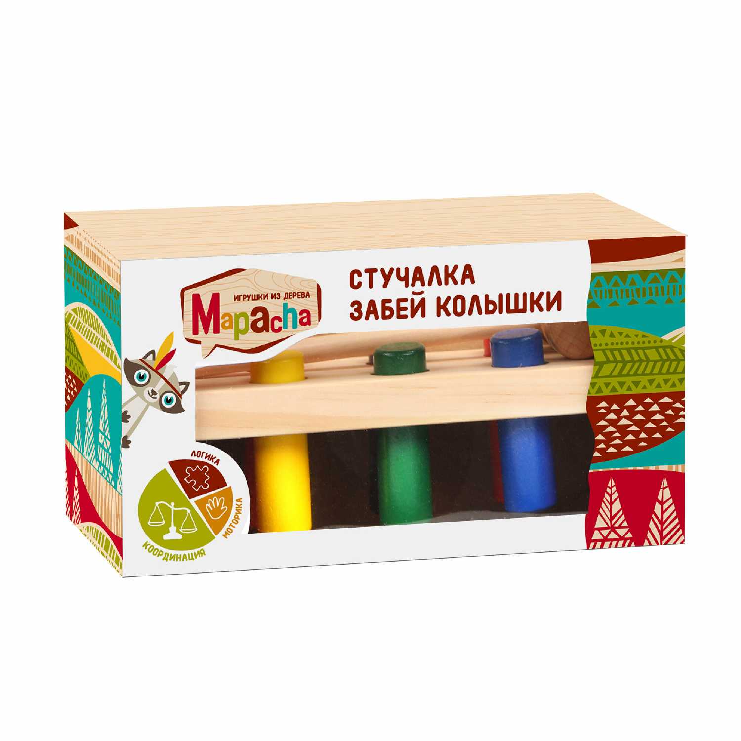 - + Яркая, надежная, деревянная, развивающая игрушка.