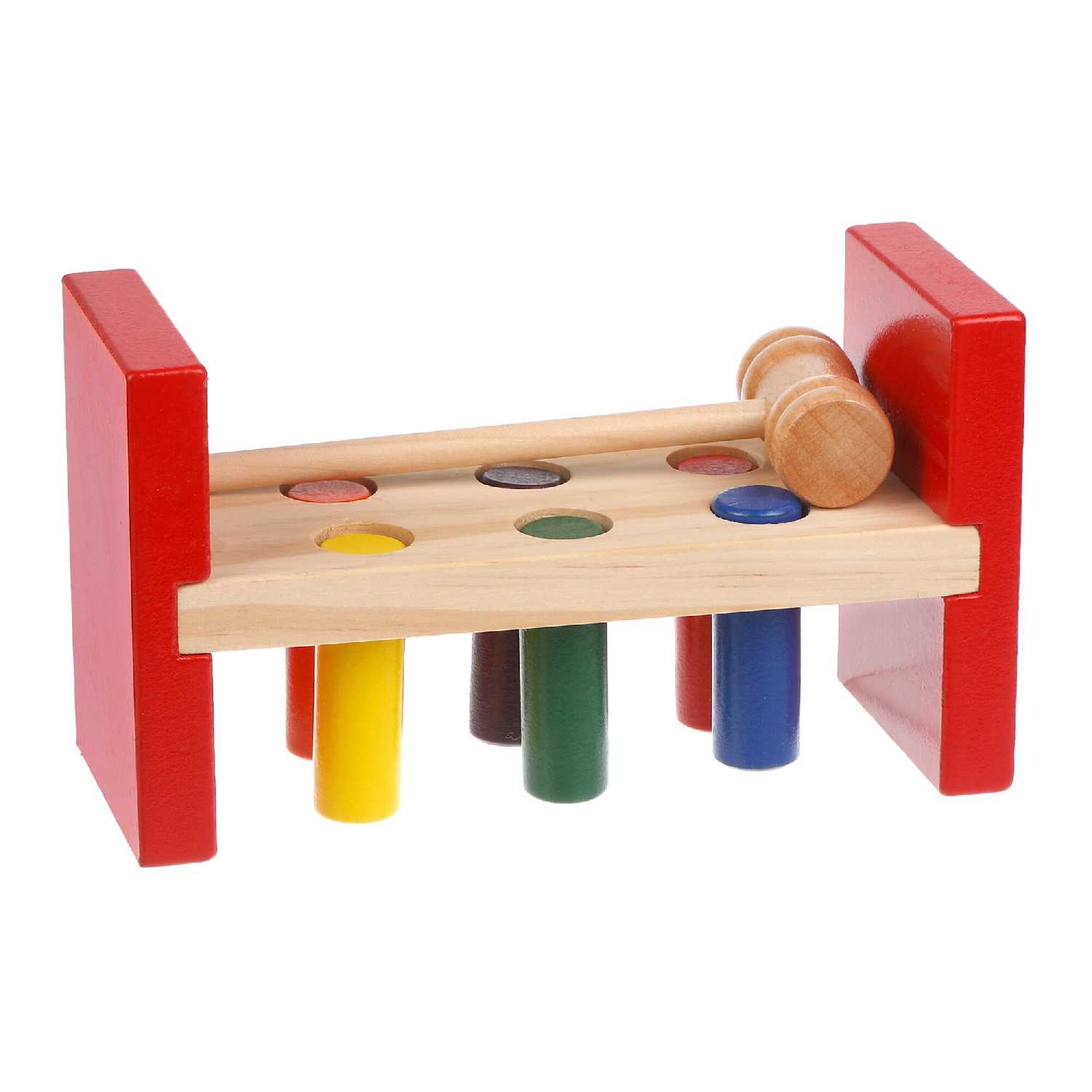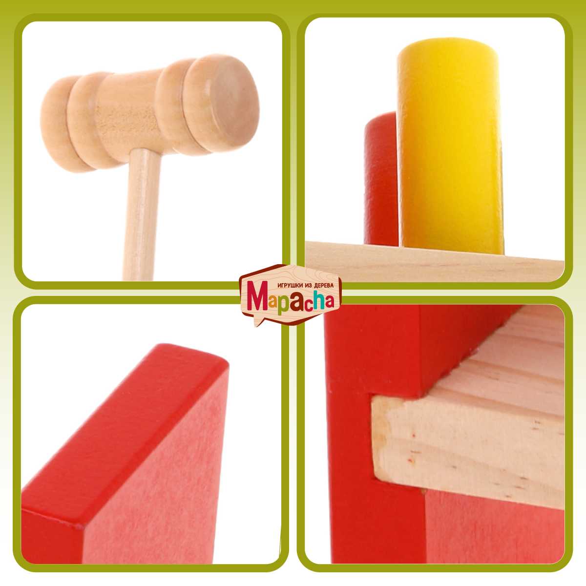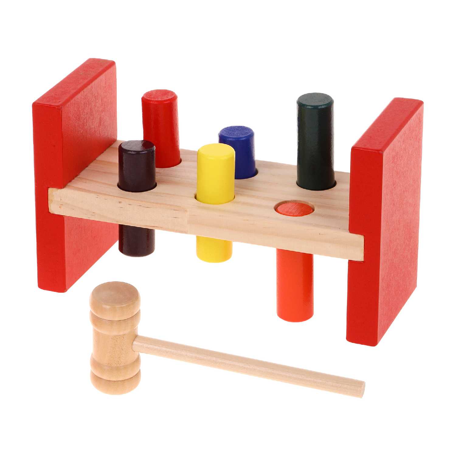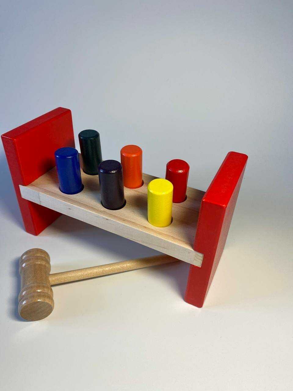 - + Выполнено из хорошего дерева, легким постукиванием штыри опускаются вниз. Сыну нравится и это главное.