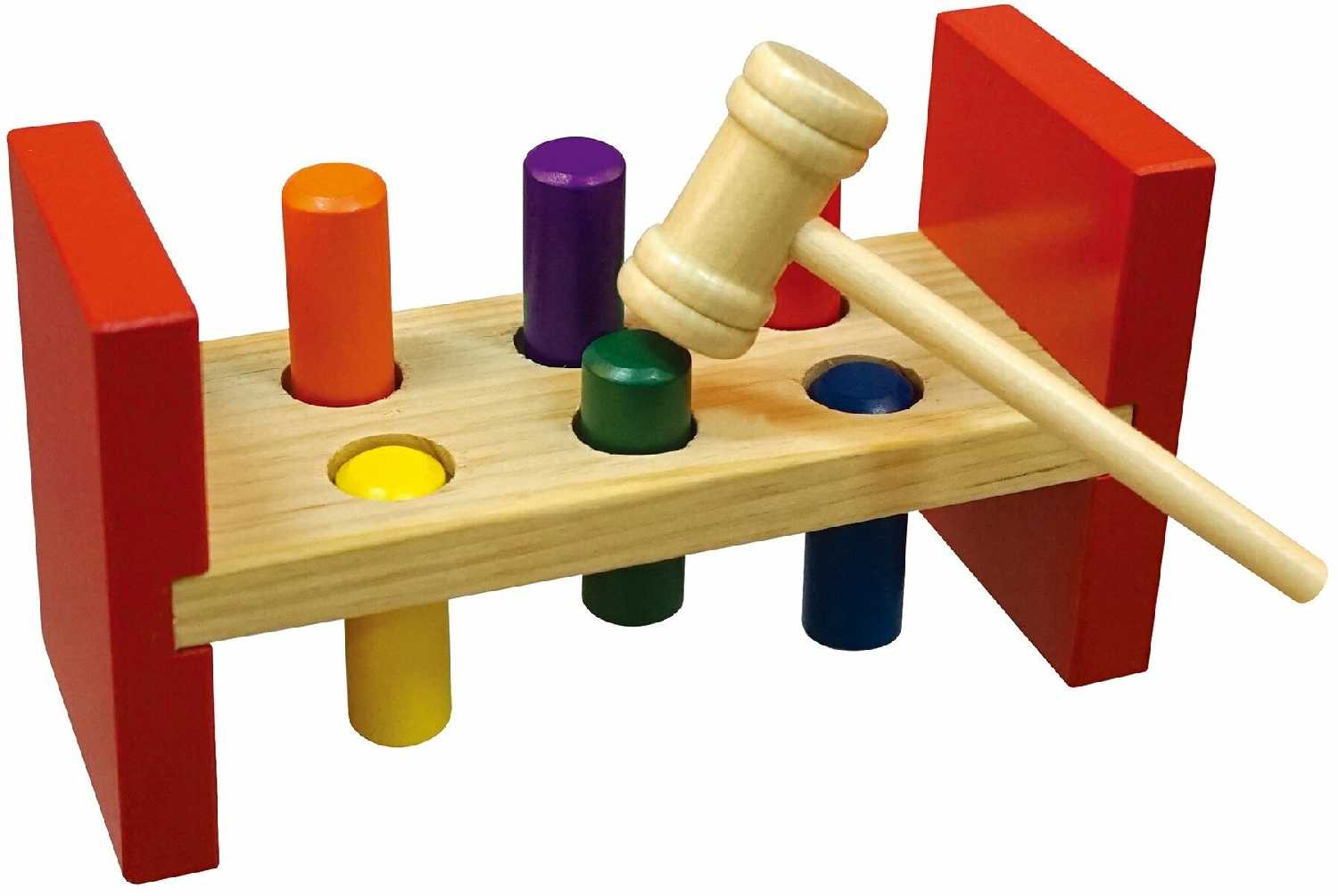 Дерево - - - Слишком легкий молоток (возможно это ради безопасности), но ребенок стучал стучал , медленно для него столбики забивались, сам потом начал пальцем вдавливать, потом переворачивал игрушку и в обратную начинает давить. Так быстрее у него выходит.