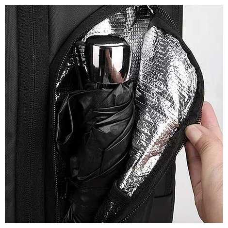 Один из карманов для бутылок термоизолирован, держит холод, но не долго. Но все равно приятно, даже учитывая, что в него с трудом влезает бутылка 0,5. Второй отсек для бутылки с расширителем.