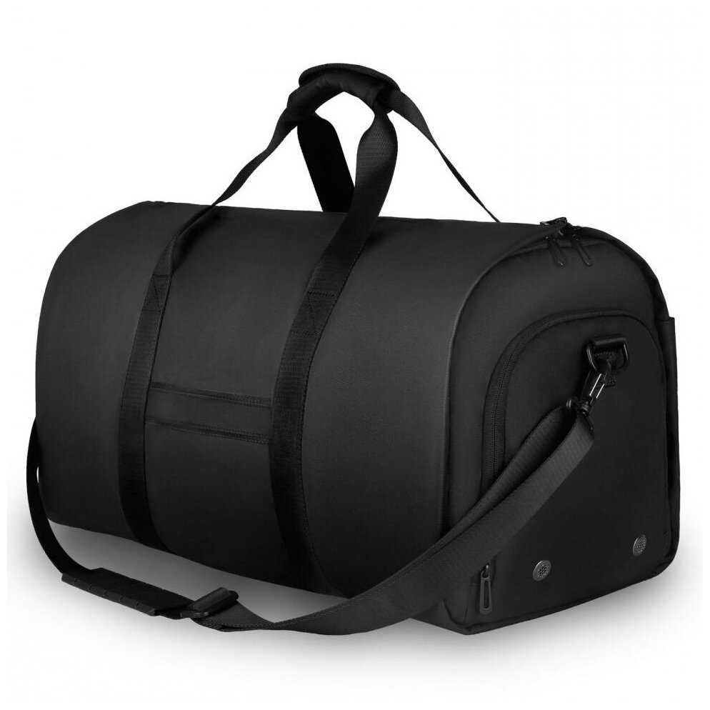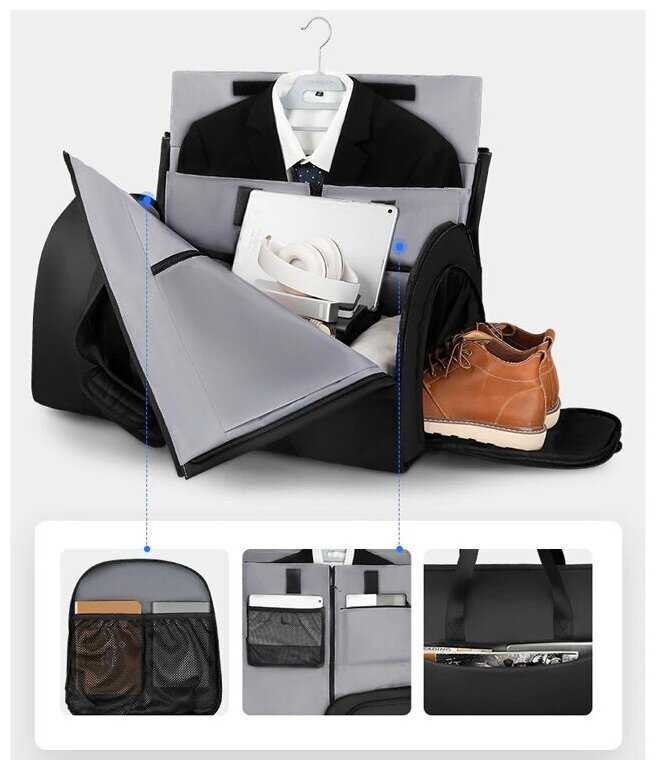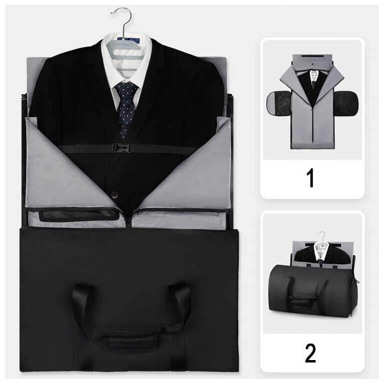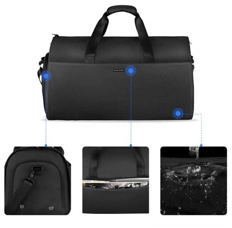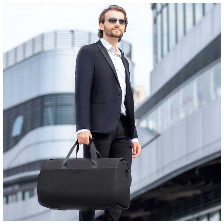 - + Качественный материал, удобная, стильно выглядит, довольно вместительная. Возможность положить костюм и отдельный отсек под обувь.