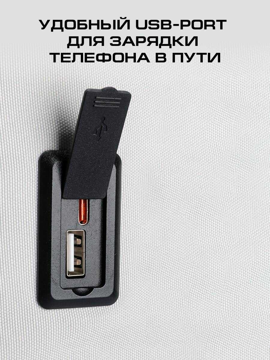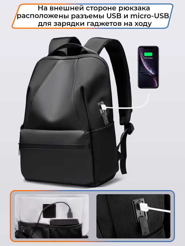 Порт поддерживает быструю зарядку мощностью 20Вт, но встроенный кабель невозможно заменить пользовательским. Провод фиксирован внутри рюкзака, что вызывает неудобства из-за его постоянного болтания в основном отделе. Отсутствие возможности отсоединения ограничивает практичность этой функции. -