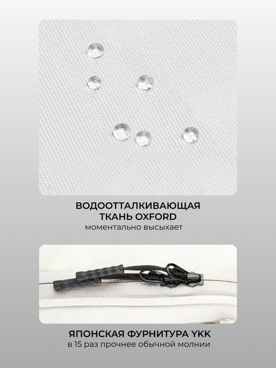 - Использование плотной, приятной на ощупь ткани с водонепроницаемой пропиткой обеспечивает защиту вещей от дождя.