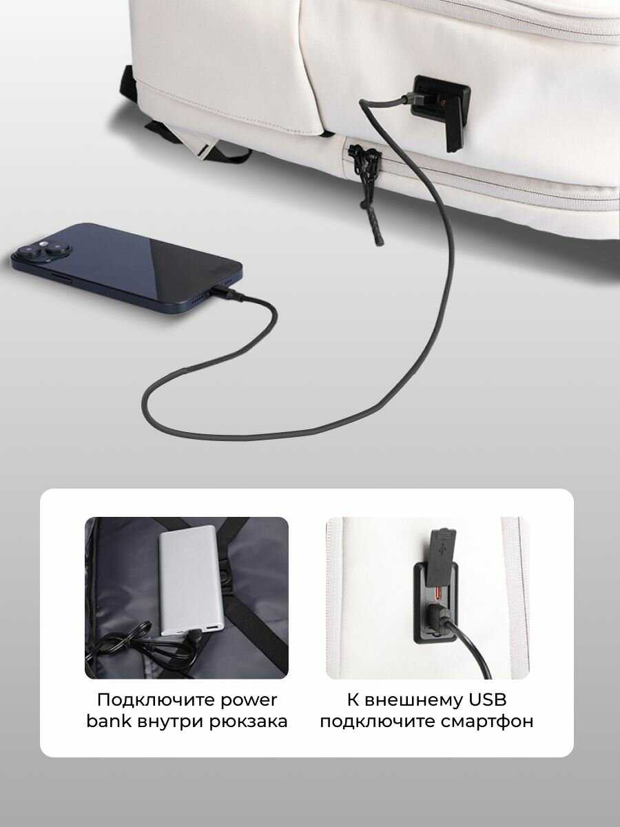 - Внутренние кабельные органайзеры предотвращают запутывание проводов от power bank.