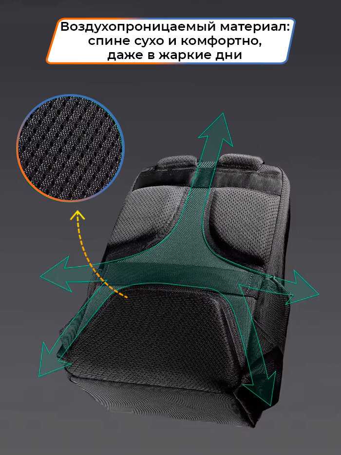 - Регулируемые ручки позволяют носить рюкзак как сумку, адаптируя под ситуацию.