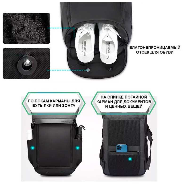 Если в деталях, я смог вместить туда ноут 17 диагонали, блок питания, две пары кроссовок, две рубашки, двое шорт, две пары штанов, четыре футболки. Ну я думаю этого комплекта хватит на любой выезд каждому. (Можно и по больше забить при желании, но как ручная кладь уже не пройдёт). При всём этом рюкзак защищает от какого количества влаги (в дождь не тестил)