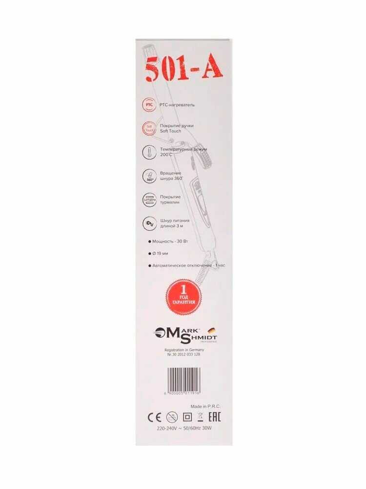 Характеристи Mark Shmidt Плойка профессиональная цилиндрическая (d19мм, 200˚С, 36W)