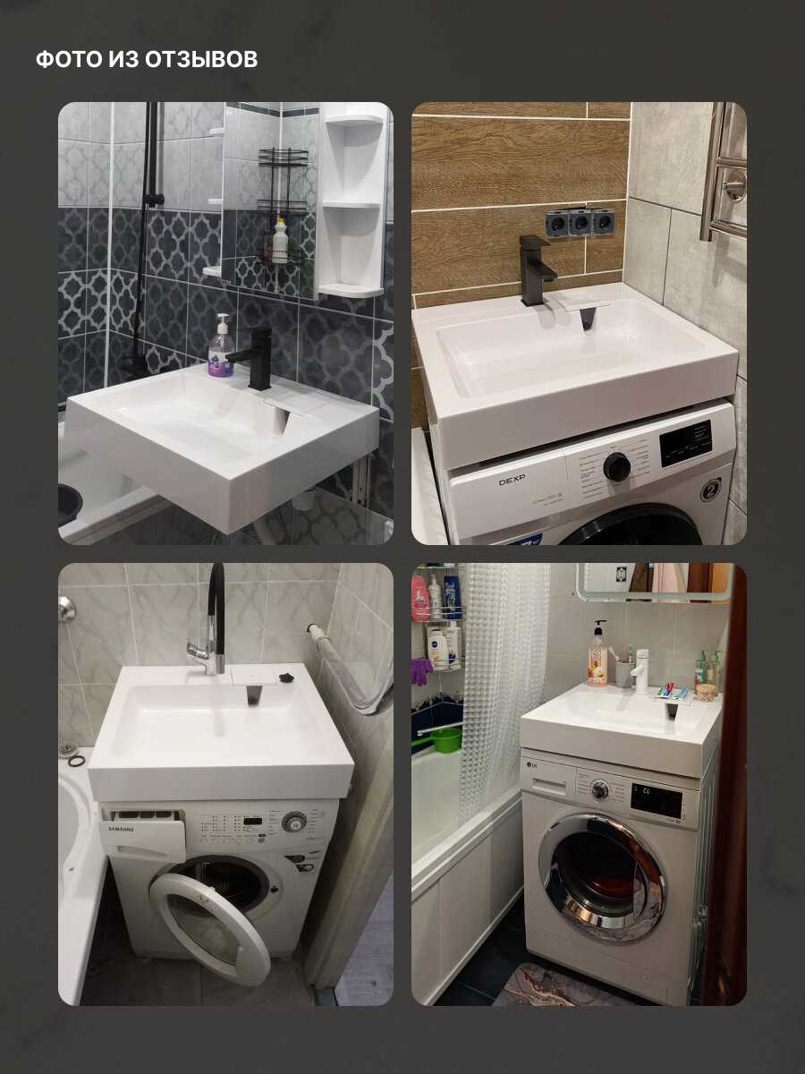 - + Удобная раковина, над узкой стиральной машиной 40см глубиной встала идеально с запасом - сзади осталось много места у стены. По высоте тоже удобно.