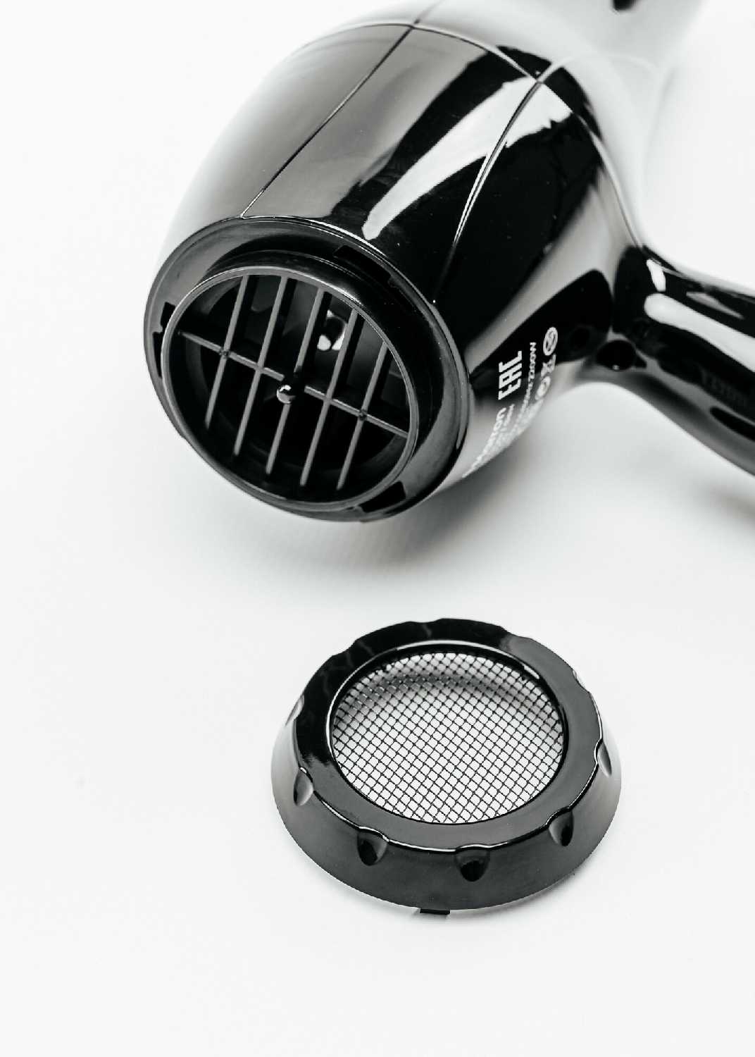 - + Отличный фен для проффесионалов, на потоке клиентов выдерживает. Удобный форм-фактор держателя, кнопки переключения скорости и нагрева расположены как надо. длинный шнур питания. Работаю им 3 месяца, вполне доволен приобретением.