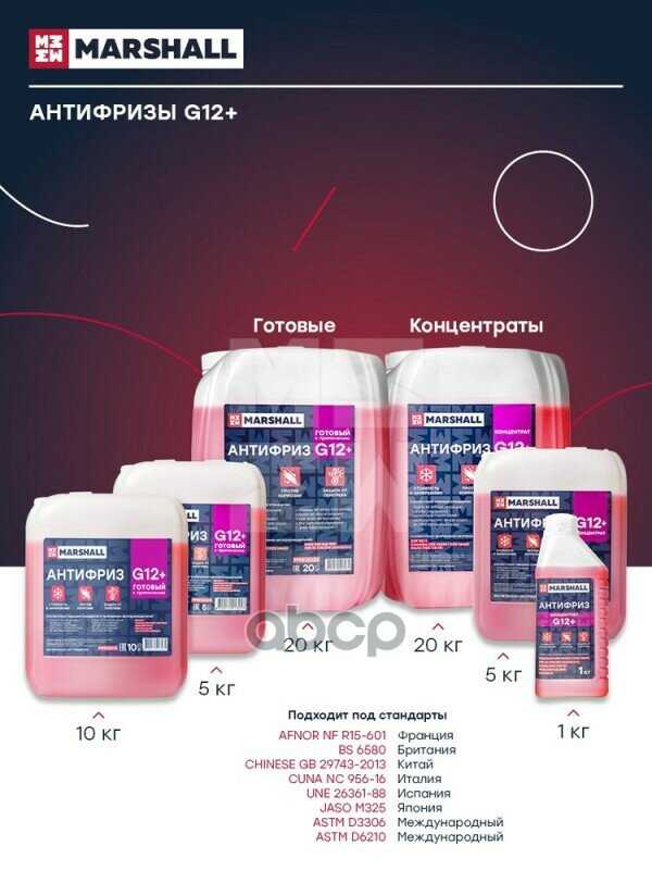 | Дополнительная информация : | Охлаждающая жидкость G12+ красного цвета на основе моноэтиленгликоля и специально подобранного пакета присадок которые включают в себя карбоксилатные и силикатные смеси. Предназначен для работы в тяжелых условиях эксплуатации и режимах постоянных высоких нагрузок. Карбоксилаты препятствует возникновению и распространению ржавчины силикаты создают защитный слой. Соответствует стандартам: ANFOR NF R15-601, BS6580, Chinese GB 29743-2013, CUNA NC 956-16, UNE 26361-88, JASO M325, ASTM D3306, ASTM D6210. Соотношение частей для разбавления концентрата водой смотрите в соответствующей таблице на этикетке концентрата. |