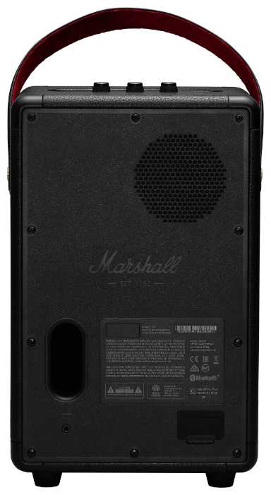 Если бы я не знал, что это портативная акустика, то вначале подумал, что мне по ошибке дали комбо усилитель. Так как по размерам 229 x 163 x 350 колонка схожа с ним, а металлический защитный гриль с надписью Marshall ещё больше вводит в обман. Но всё обошлось и передо мной реально колонка, кстати Marshall Tufton является самой большой портативной колонкой компании, за всю историю не было подобных устройств. По наследству Tufton получил деревянный корпус, который обтянут виниловой пленкой под кожу, выглядит стильно и приятно на ощупь. Для сохранности углов, на них одели алюминиевые уголки, которые дополнительно придают колонке надежного вида и напоминания гитарного усилителя. Порадовало, что дно решили оснастить резиновыми ножками, так колонка не вибрирует и стойко стоит на любой поверхности. Сзади расположился фазоинвертор для низкочастотного динамика и еще одна решетка для динамика, подробнее о них я расскажу в разделе звучание. Под фазоинвертором разместился AUX порт, кабель для которого не идет в комплекте. Для настройки звучания Tufton на верхушку поставили 3 ручки потенциометра, которые отвечают за регулировку громкости, баса и высоких частот. Также по соседству с ними разместилась индикация заряда аккумулятора на 10 значений и кнопка сопряжения. Включается колонка ручкой громкости, мне кажется раньше было лучше, все эти золотые тумблеры выглядели более аутентично, но как говориться прогресс не стоит на месте. А дополняет общий вид, кожаная ручку с замшевым покрытием внутри, которая крепиться к колонке 2 золотыми заклепками. Если честно дизайн мне понравился и нет, впрочем, он хорош, но не такой классный как был в более старших моделях, видимо им пришлось пожертвовать для добавления влагозащиты уровня IPX2. Да плавать с колонкой нельзя, но хотелось увидеть того, кто захотел бы плыть с 5 килограммовой колонкой, но зато с таким уровнем защиты не страшны попадания брызг от напитков и т.д.