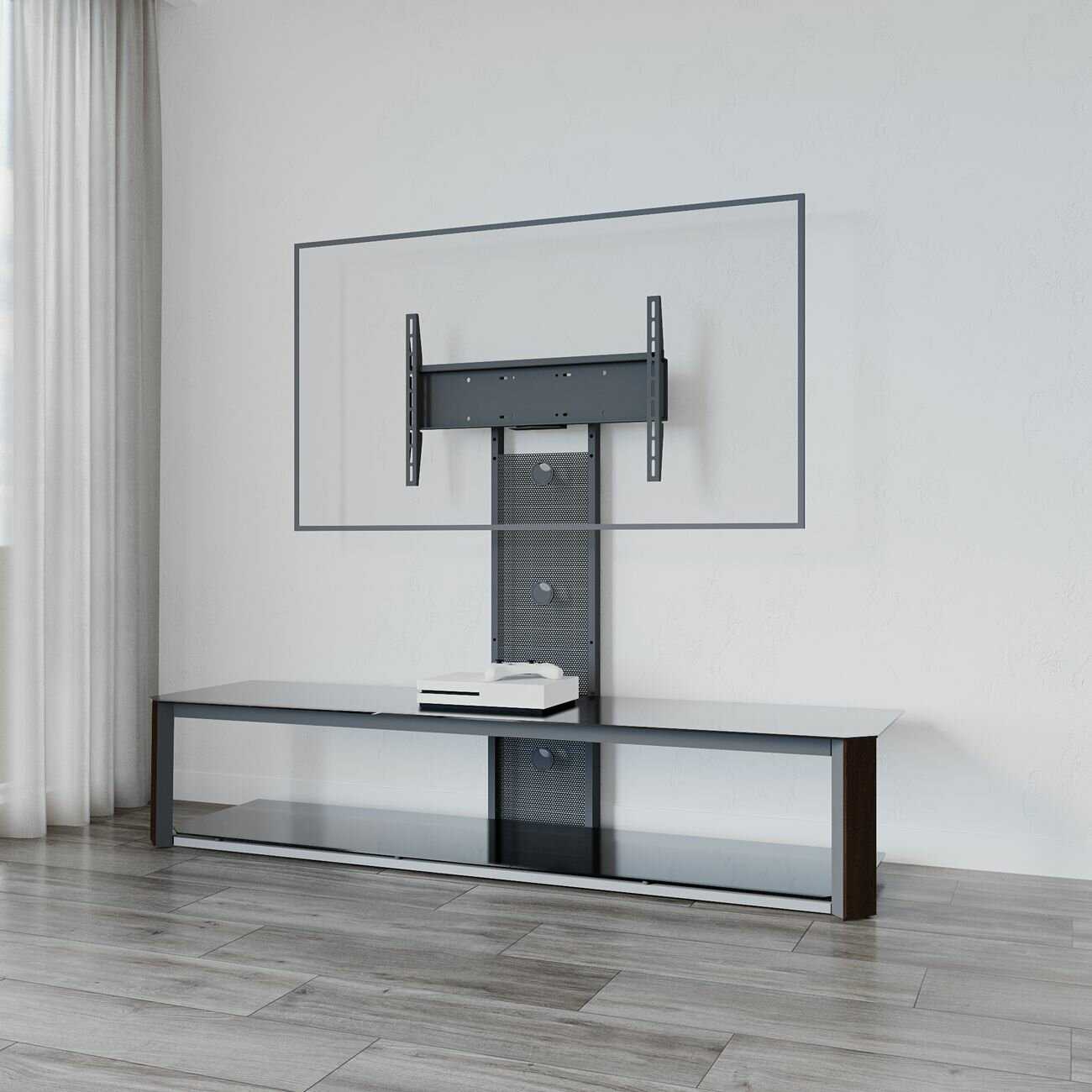 Закаленное стекло, подвес как под большие диагонали ТВ, так и под средние. Стильный, без лишних деталей дизайн, Российский производитель