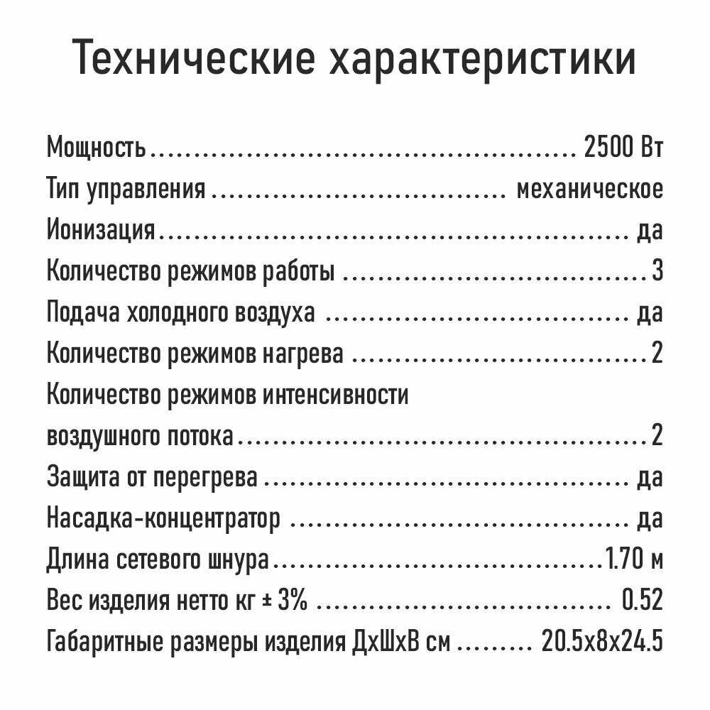 - + Мощный фен, сушит горячим воздухом очееь быстро