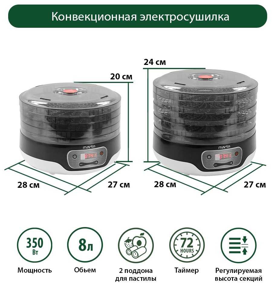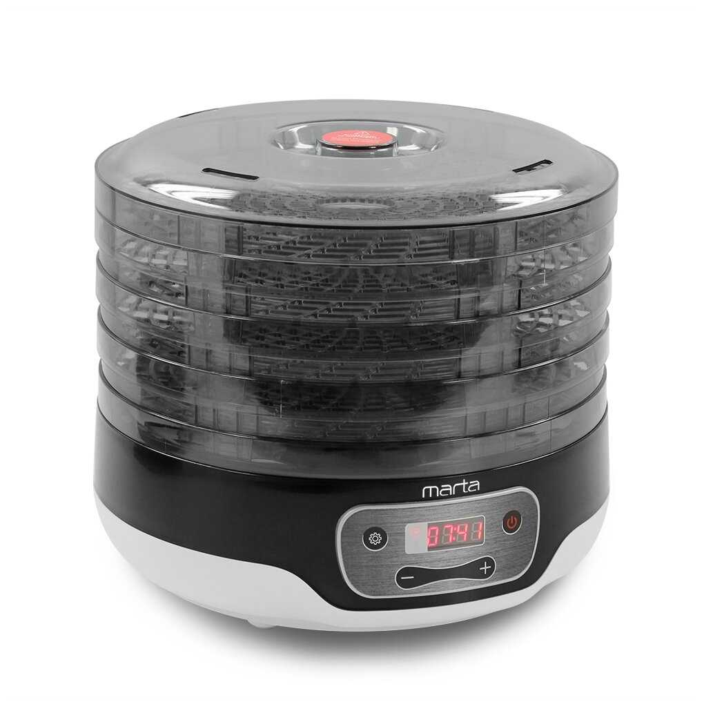 Данная сушилка для овощей и фруктов представляет собой удачный компромисс между функциональностью и компактностью. Ее ключевое преимущество — шесть многоуровневых поддонов, включая специализированные для пастилы, что позволяет одновременно обрабатывать разнотипные продукты. Технические параметры, такие как регулируемая температура до 350°C и цифровой таймер, делают ее универсальной для мяса, фруктов, трав и даже йогурта (при докупке аксессуаров). Однако небольшие габариты поддонов и их хрупкость могут стать проблемой для тех, кто планирует заготавливать большие объемы.