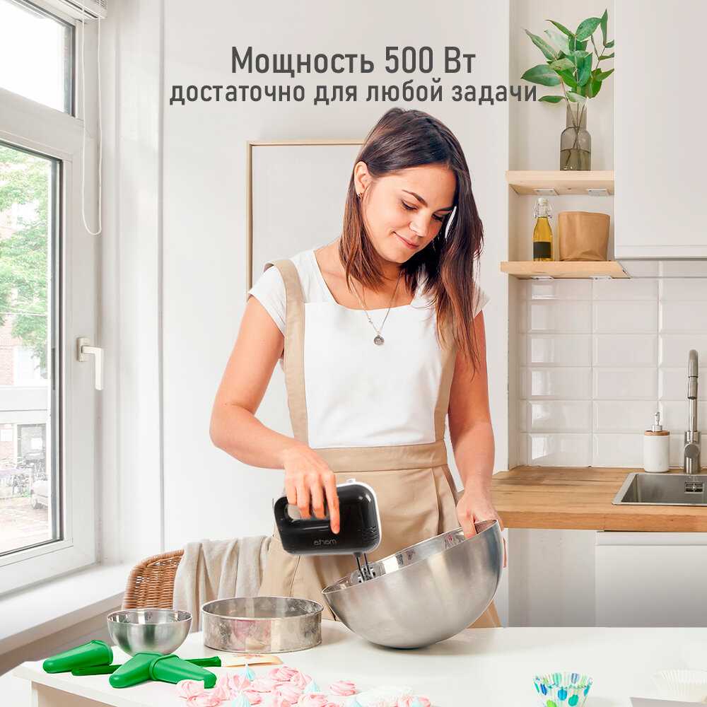 Миксер обладает мощностью 800 Вт, что позволяет ему уверенно работать с широким спектром продуктов. Пользователи отмечают, что он легко взбивает белки для безе до устойчивых пиков, справляется с приготовлением густого теста для выпечки и быстро готовит воздушные кремы. Наличие пяти скоростей и турборежима обеспечивает гибкость в выборе оптимального режима для каждого типа ингредиентов, будь то легкие сливки или плотное песочное тесто. -