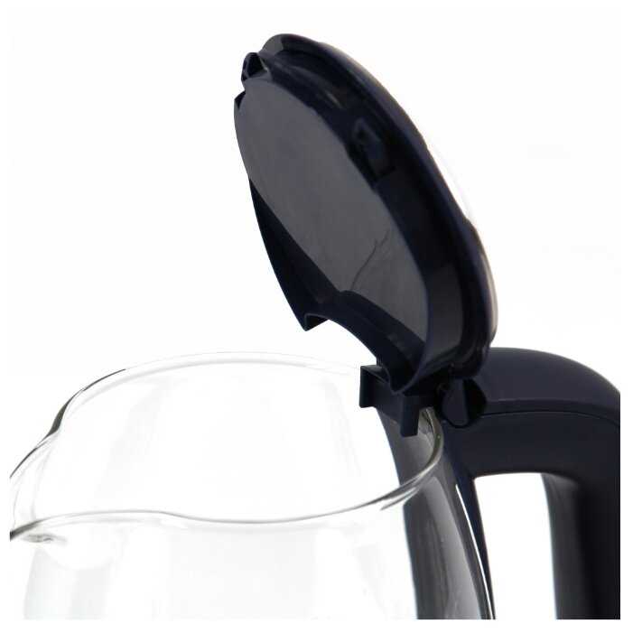 - Прозрачное жаростойкое стекло позволяет видеть уровень воды и процесс кипения, что удобно для контроля (шкала с делениями помогает наливать точное количество).