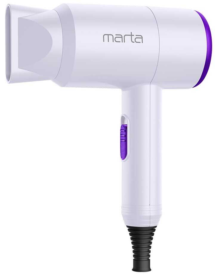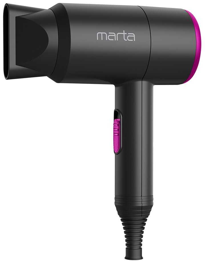 - Мощность 1600 Вт обеспечивает быструю сушку даже густых и длинных волос, сокращая время процедуры до 5 минут.