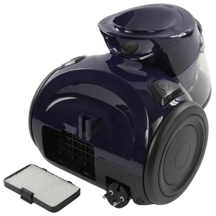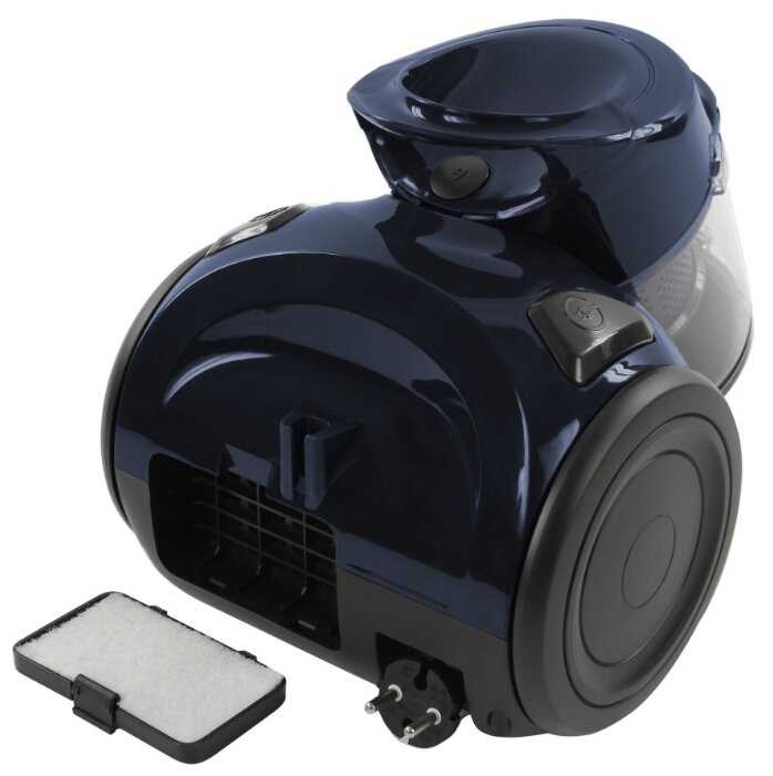 моющий контейнер и хепа фильтр , задерживает всю пыль- на внещнем фильтре нету пыли ,вся пыль в хепа фильтре , малый размер пылесоса удобно для небольшой уборки.