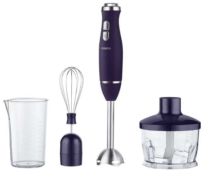 - Включает погружной блендер, измельчитель, венчик и мерный стакан, что позволяет выполнять несколько функций в одном устройстве, как отмечают многие пользователи для приготовления фарша, майонеза, супов-пюре и теста.