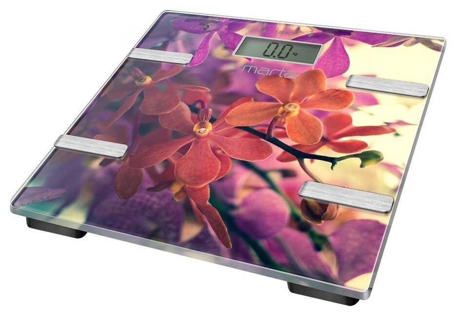 Нескользкая платформа, приятно смотреть каждый день на орхидеи. С виду нежные и хрупкие, в реале очень прочные, способны выдерживать большой вес до 180 кг. Измерения точные, с памятью, работают корректно, без погрешности. Отключаются сами. Рекомендую всем, кто следит за своим весом.