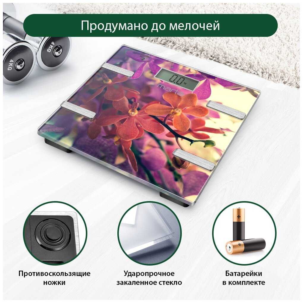 Приобрела эти весы в подарок маме на 8 марта. Но сама предварительно протестировала их дома. Принт с орхидеями очень стильный и красивый. Измеряют точно, я сверялась со своими старыми весами и обычными напольными механическими. Есть прорезиненные ножки, благодаря чему весы устойчивые. Хоть они и стеклянные, но ноги не скользят. Цифры крупные, отключение автоматическое. Думаю, что маме понравятся.