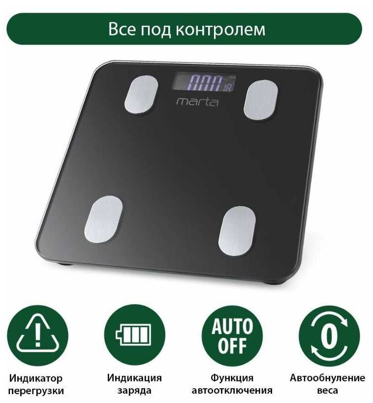 Весы электронные MARTA MT-1683 - прекрасное приобретение! Они обладают удобным и стильным дизайном, который отлично вписывается в любой интерьер. Большой и яркий дисплей делает чтение показаний очень удобным даже в условиях недостаточного освещения. Функция автоматического включения при наступлении нагрузки и автоматического выключения при бездействии помогает сохранять заряд батареи.
