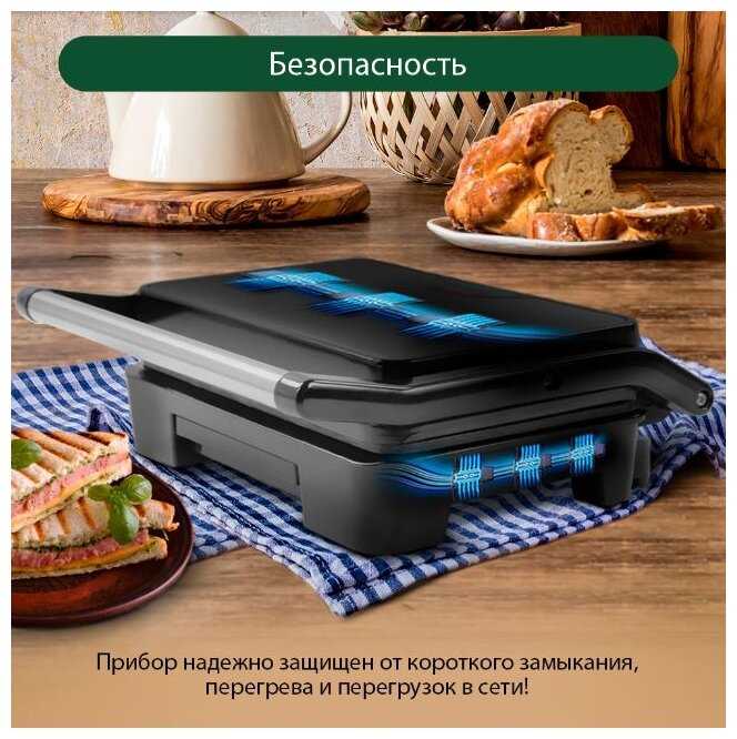 Гриль достигает рабочей температуры за считанные минуты, что позволяет сразу приступать к готовке. Это особенно удобно для быстрых завтраков или перекусов, например, при жарке бутербродов или яичницы. Пользователи подчеркивают, что скорость нагрева не уступает духовке или микроволновке. -