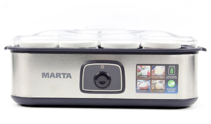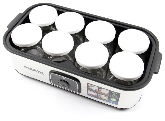 - 8 баночек позволяют готовить йогурты с разными добавками (ягоды, мюсли) для каждого члена семьи.