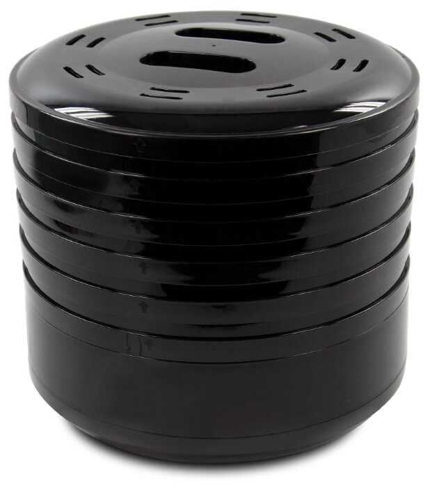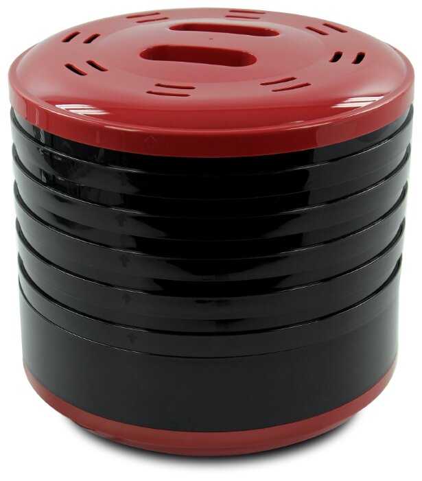 - 5 поддонов с высотой бортиков 2,5 см позволяют сушить крупные куски (например, дольки тыквы) и мелкие ягоды, при этом их можно ставить друг на друга без люфта.