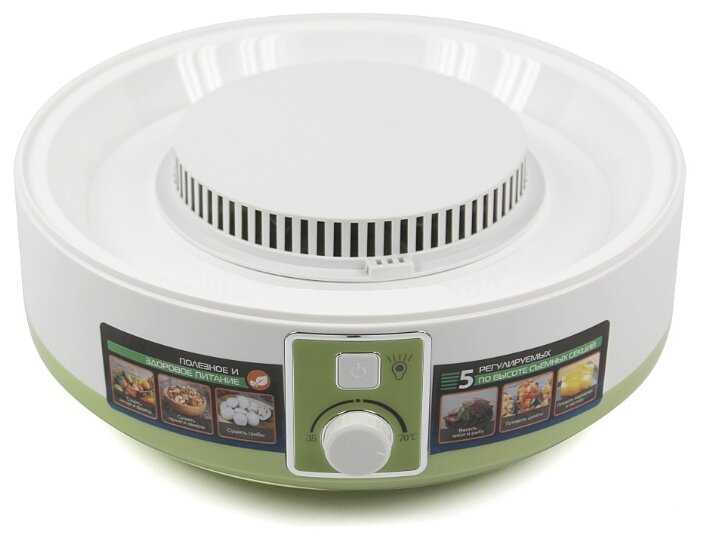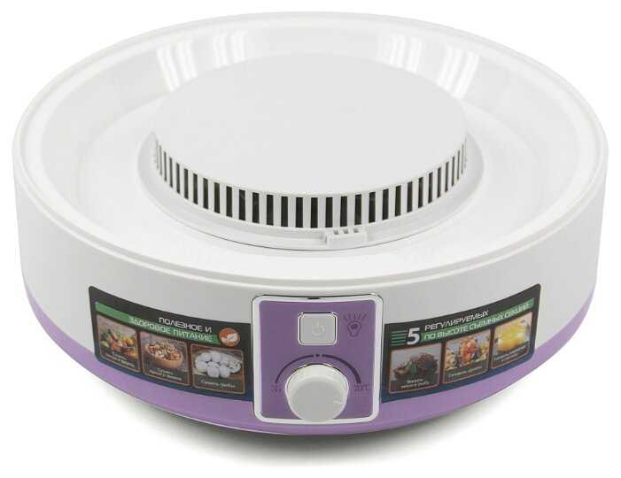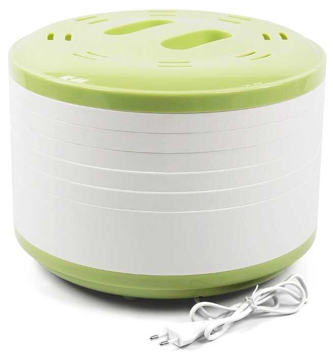- Пять съемных поддонов позволяют одновременно сушить до 1,5 кг продуктов (например, 5 этажей яблочных долек толщиной 2–3 мм).
