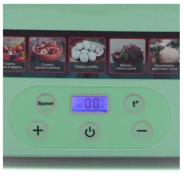 Управление интуитивно понятно даже для технически неподготовленных пользователей. Цифровой дисплей и таймер упрощают процесс, но недостаток детализированной инструкции осложняет настройку режимов для экзотических продуктов. Например, сушка вяленого мяса требует экспериментов с температурой (оптимально 65–68°C) и временем (8–12 часов). При этом электроника устройства надёжна — случаев самопроизвольного отключения или сбоев не зафиксировано.